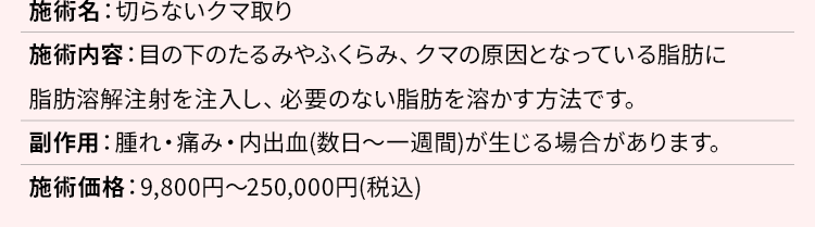 目元のクマをなくして「脱老け顔」 切らないクマ取り9,800円(税込)